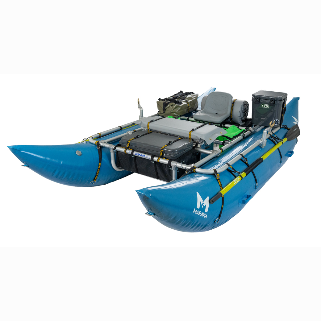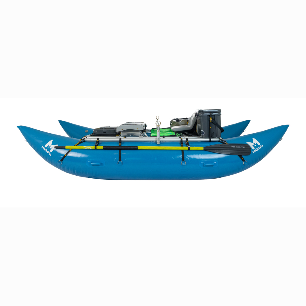 Smooth curved bow and stern profiles on this highly maneuverable cataraft cut the water more like a hard hull and gives better handling characteristics. Made of Maravia’s tough Class VI material, coated with durable urethane, and a full 10-year warranty.