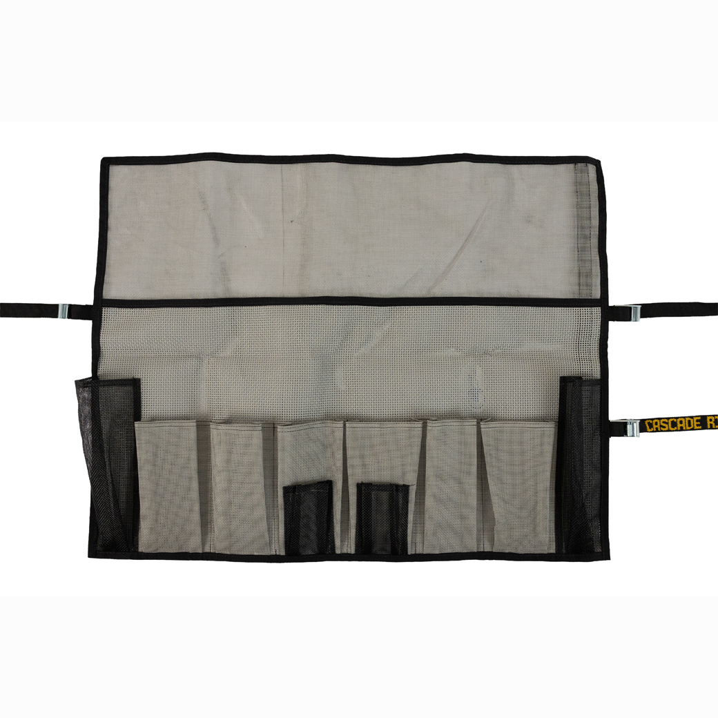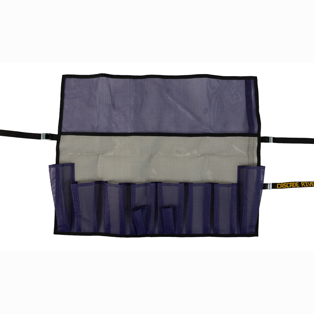 Upgraded Utensil holder with superman mesh! Separate your utensils and dry at the same time. Fold and roll away for storage. Hangs easily from a table for easy access.