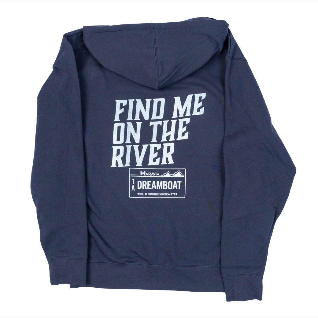 Stay warm while chasing river miles in the Maravia Dream Truck River Hoody. Featuring a vintage truck hauling a raft on the front and a “Find Me On The River” license plate graphic on the back, this hoody captures the spirit of road trips to the put-in and long days on the water. Comfortable, durable, and built for cool mornings and campfire evenings, it’s the perfect layer for river trips, boating, and everyday wear.