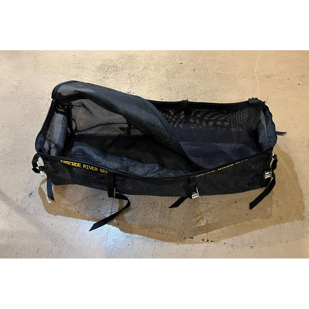 Drop Boxes made of Superman Mesh holds a box shape sturdy enough to take anything you throw in it! Straps to your frame bars.